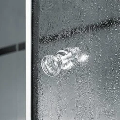 Auf Wunsch ist die Verglasung mit einer Edelglas-Beschichtung möglich. Diese einseitig aufgetragene Beschichtung minimiert das Antrocknen von Wassertropfen und das Festsetzen von Schmutz und Kalk. Die Reinigung der Verglasung wird damit erleichtert – allerdings nicht erspart.