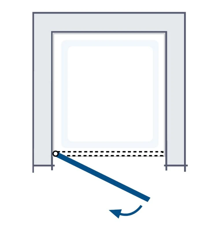 - Tür nach außen öffnend (Öffnungswinkel 90°)