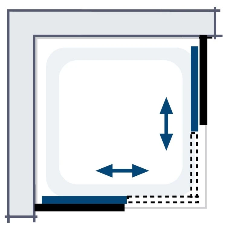 Das Wanneneinbaumaß ist nicht der Verstellbereich der Duschkabine und entspricht nicht dem Einbaumaß für bodenebenen Einbau.