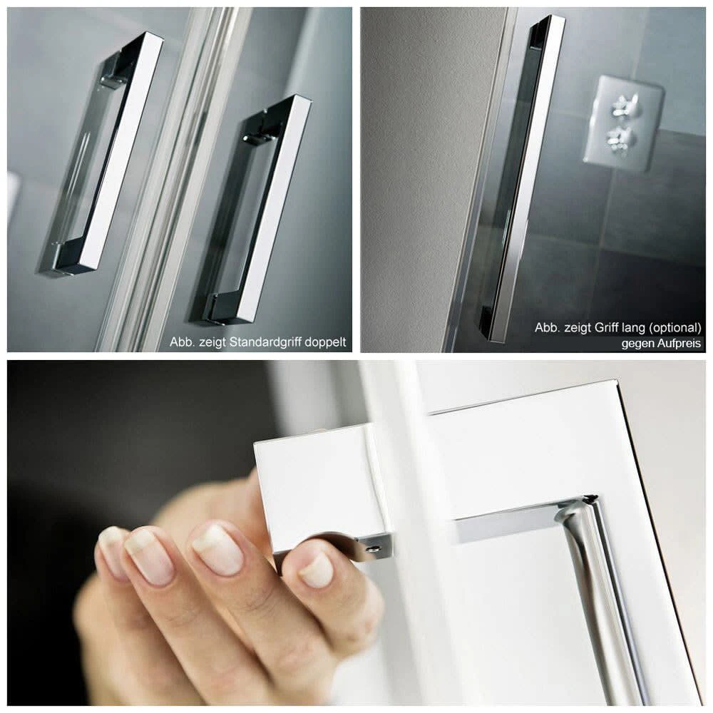 - Diese zwei Pendeltüren für die Nische öffnen sowohl nach außen als auch nach innen. Optional mit ShowerGuard lieferbar!