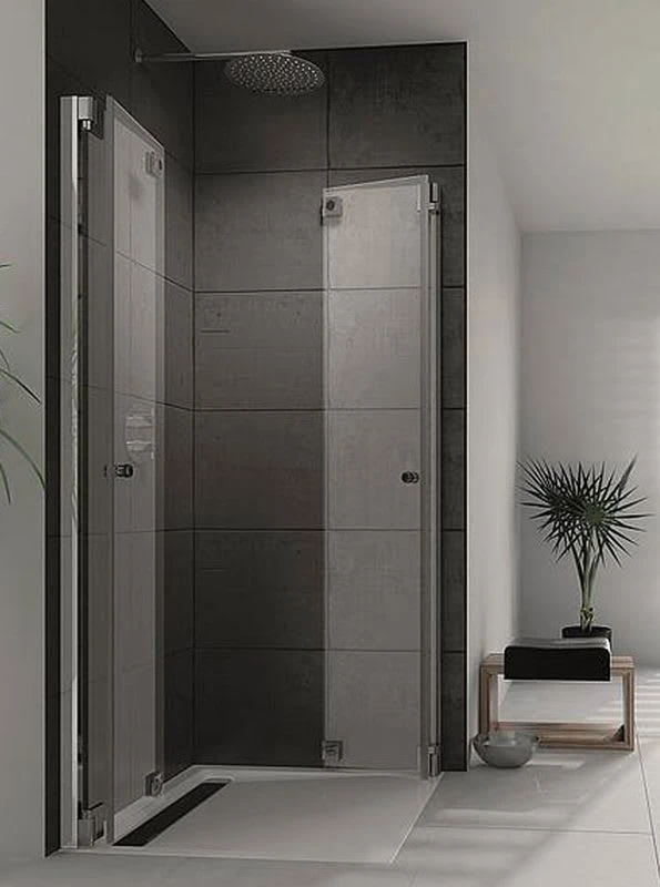 - Mit zwei Drehfalttüren, jeweils an die Wand angeschlagen
