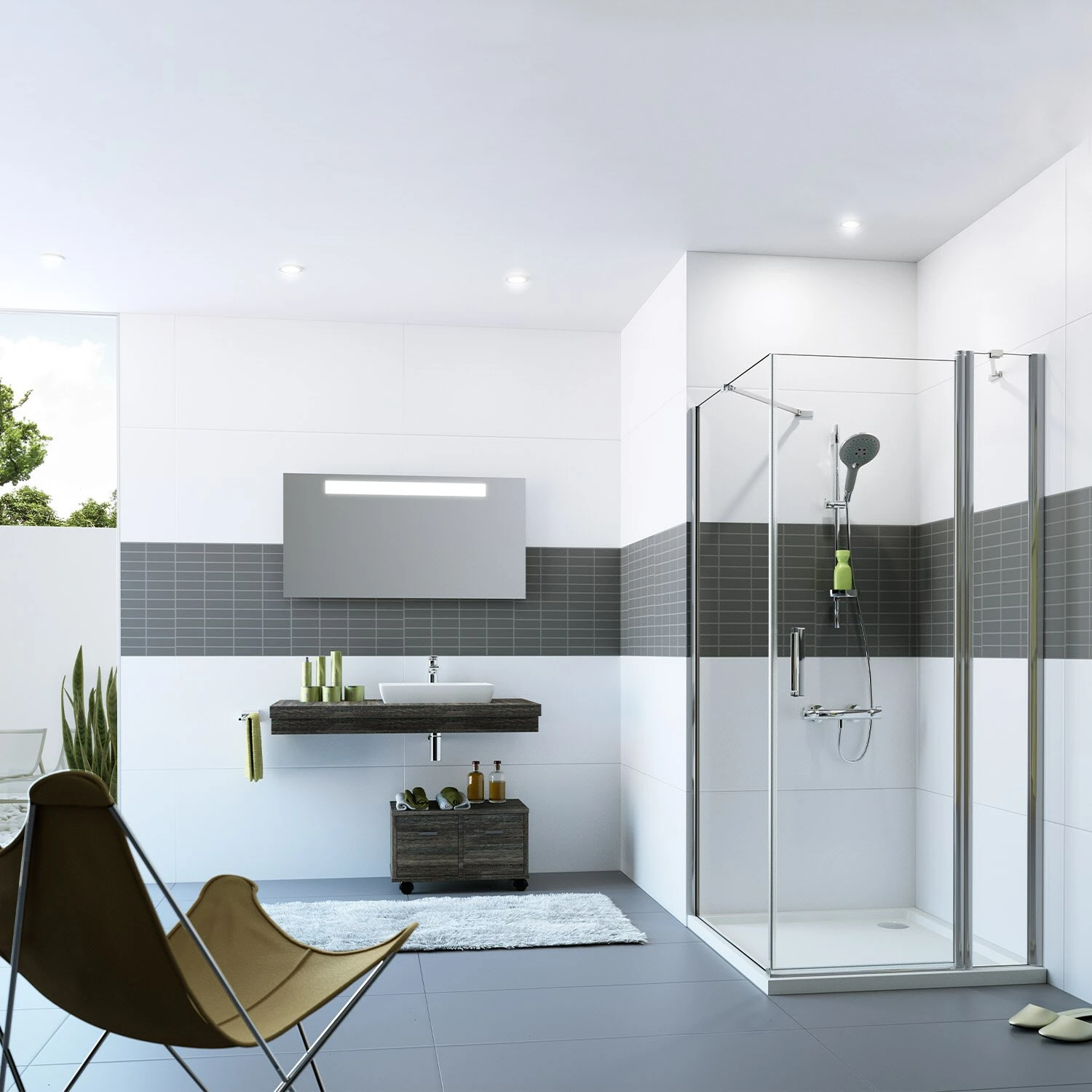- kombinierbar mit Seitenwand oder Schwingtür mit Festteil gleichen Typs zum Eckeinstieg