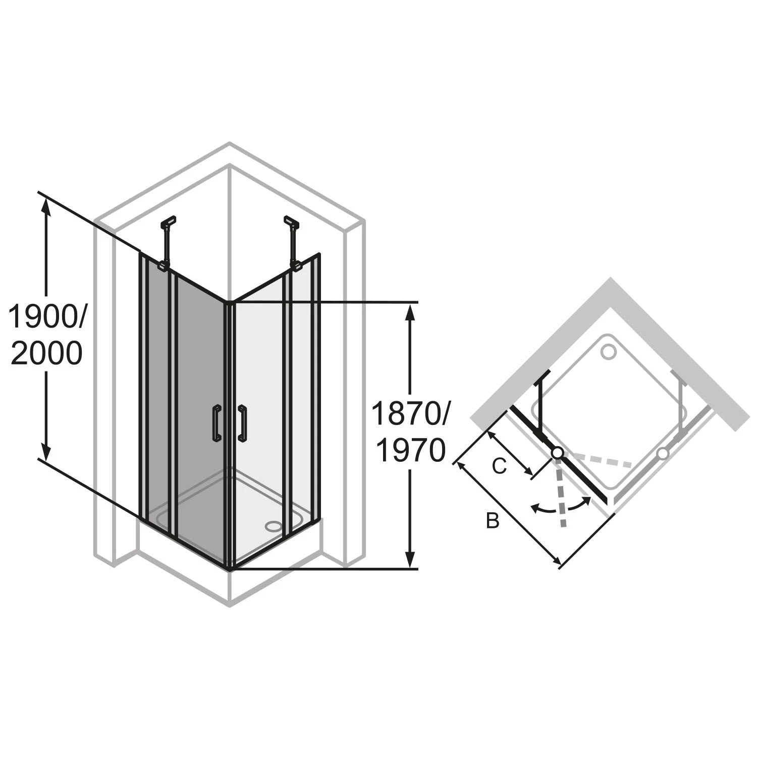 - kombinierbar mit Seitenwand oder Schwingtür mit Festteil gleichen Typs zum Eckeinstieg