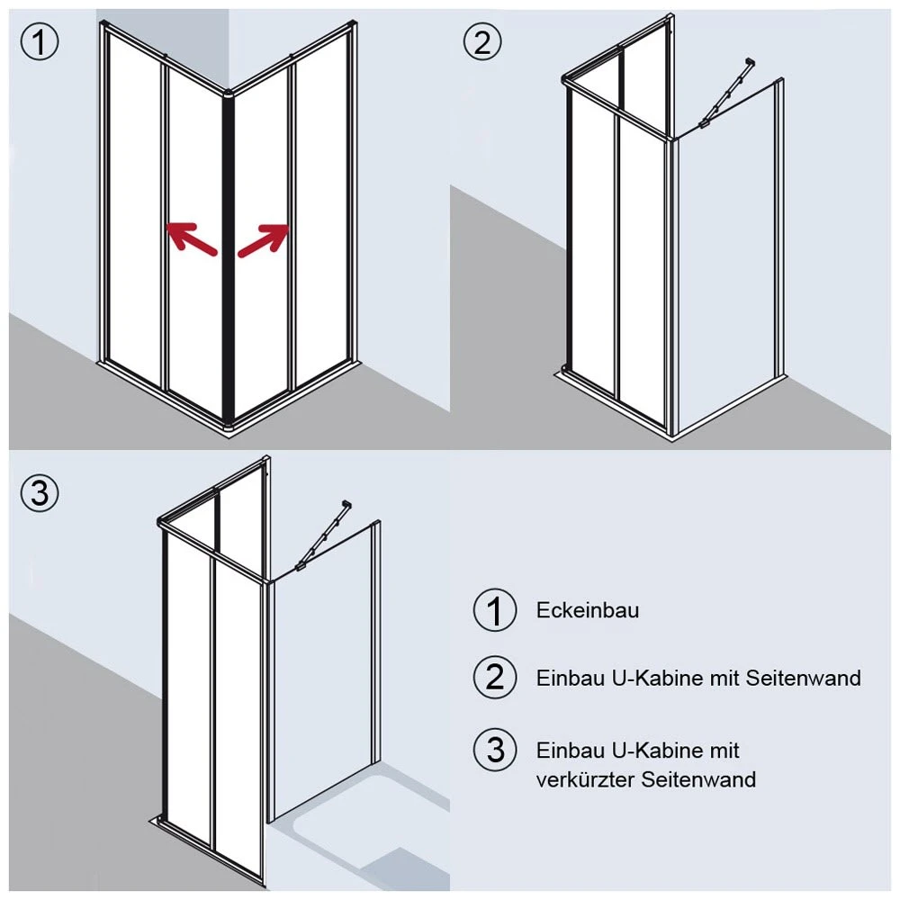 - zur Montage in Ecke oder als U-Kabine in Verbindung mit
