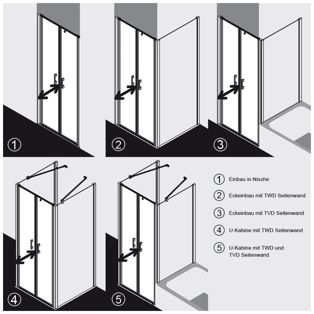 - zum Einbau in der Nische, Ecke oder als U-Kabine
