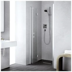 Kermi Liga Pendel-Falttür für Duschwanne 80 cm mit 2 Glasflügeln, Anschlag links