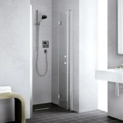 Kermi Liga Pendel-Falttür H: 185 cm für Duschwanne 120 cm mit 2 Glasflügeln, Anschlag rechts