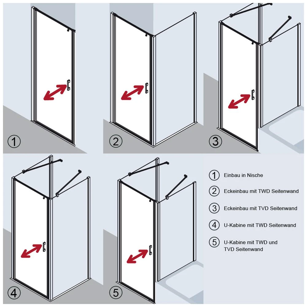- zum Einbau in der Nische, Ecke oder als U-Kabine