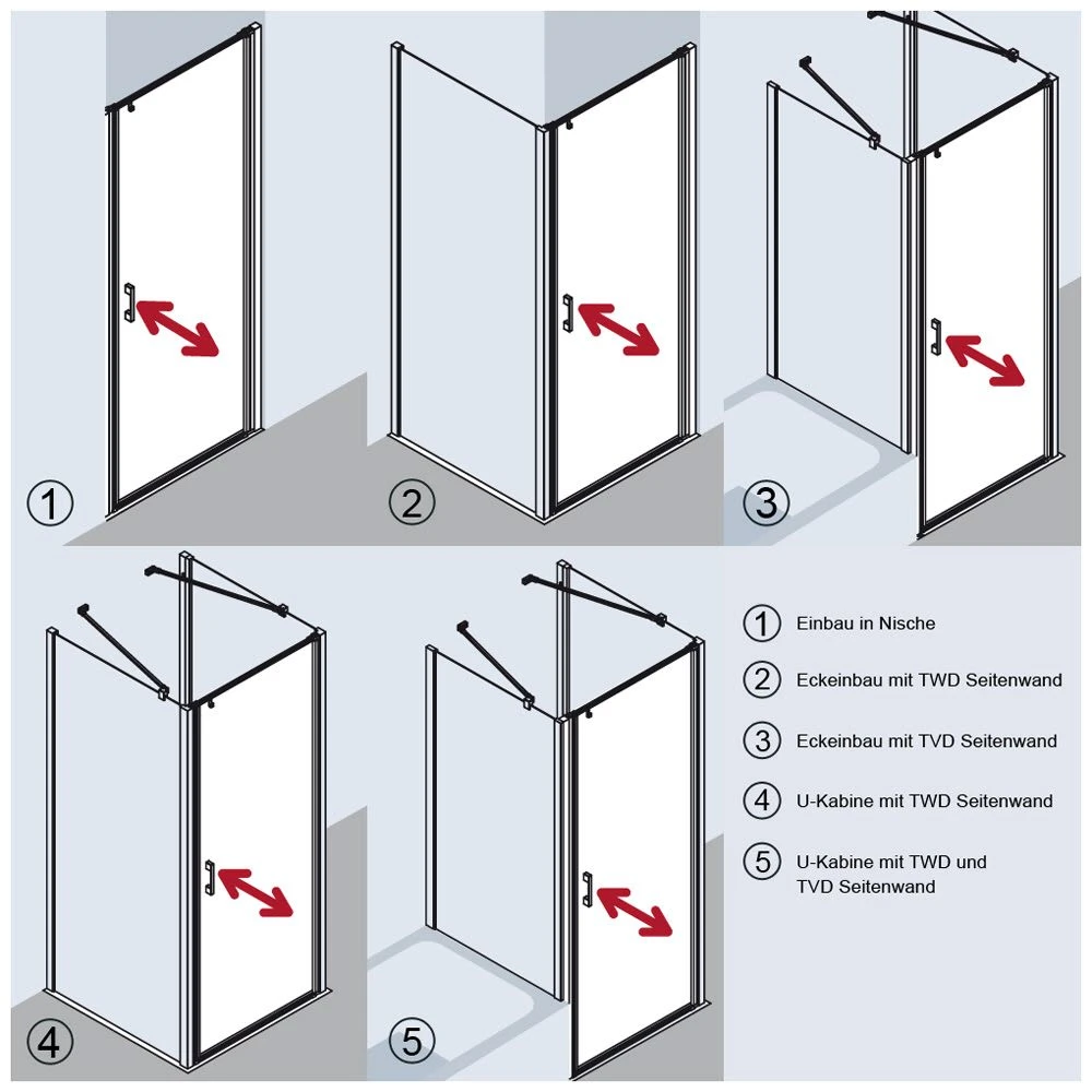 - zum Einbau in der Nische, Ecke oder als U-Kabine