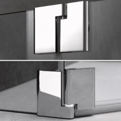 - Teilgerahmte Fünfeck-Duschkabine mit einer Pendeltür, Anschlag rechts (nach innen und außen öffnend) und 2 Festfeldern