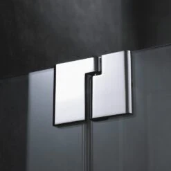 - Teilgerahmte Fünfeck-Duschkabine mit zwei Pendeltüren (nach innen und außen öffnend) und 2 Festfeldern
