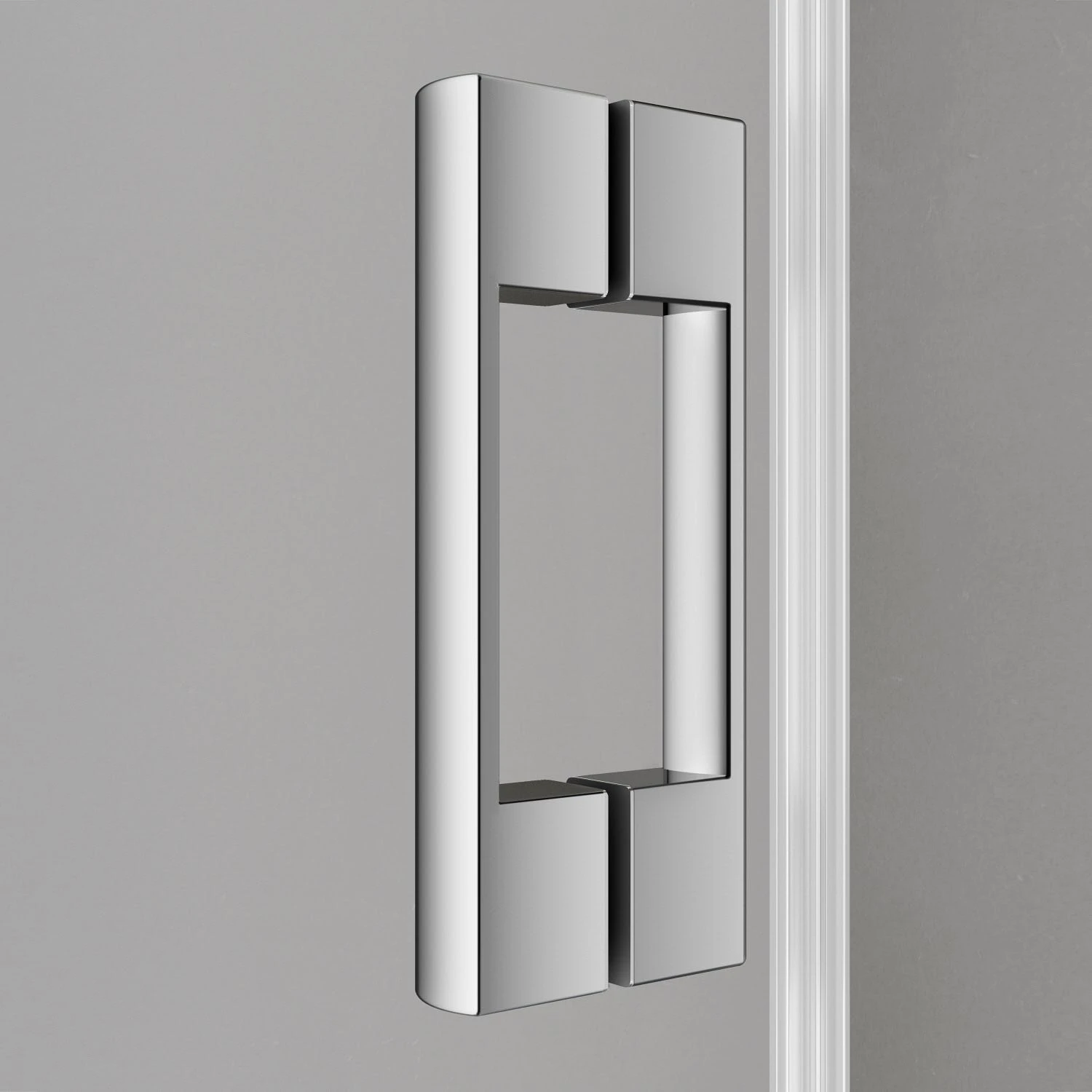 - Teilgerahmte Fünfeck-Duschkabine mit zwei Glasflügeln, nach innen und außen öffnend, mit zwei Festfeldern