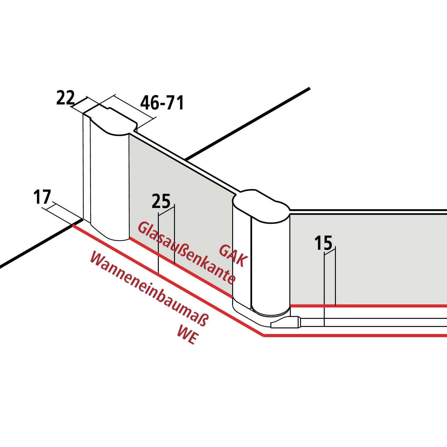 - Schenkelmaß Wanne: 45 cm