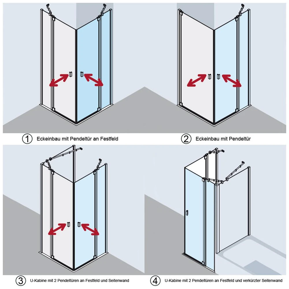 Kermi Raya Eckeinstieg Pendeltür mit Festteil 100 cm Halbteil rechts