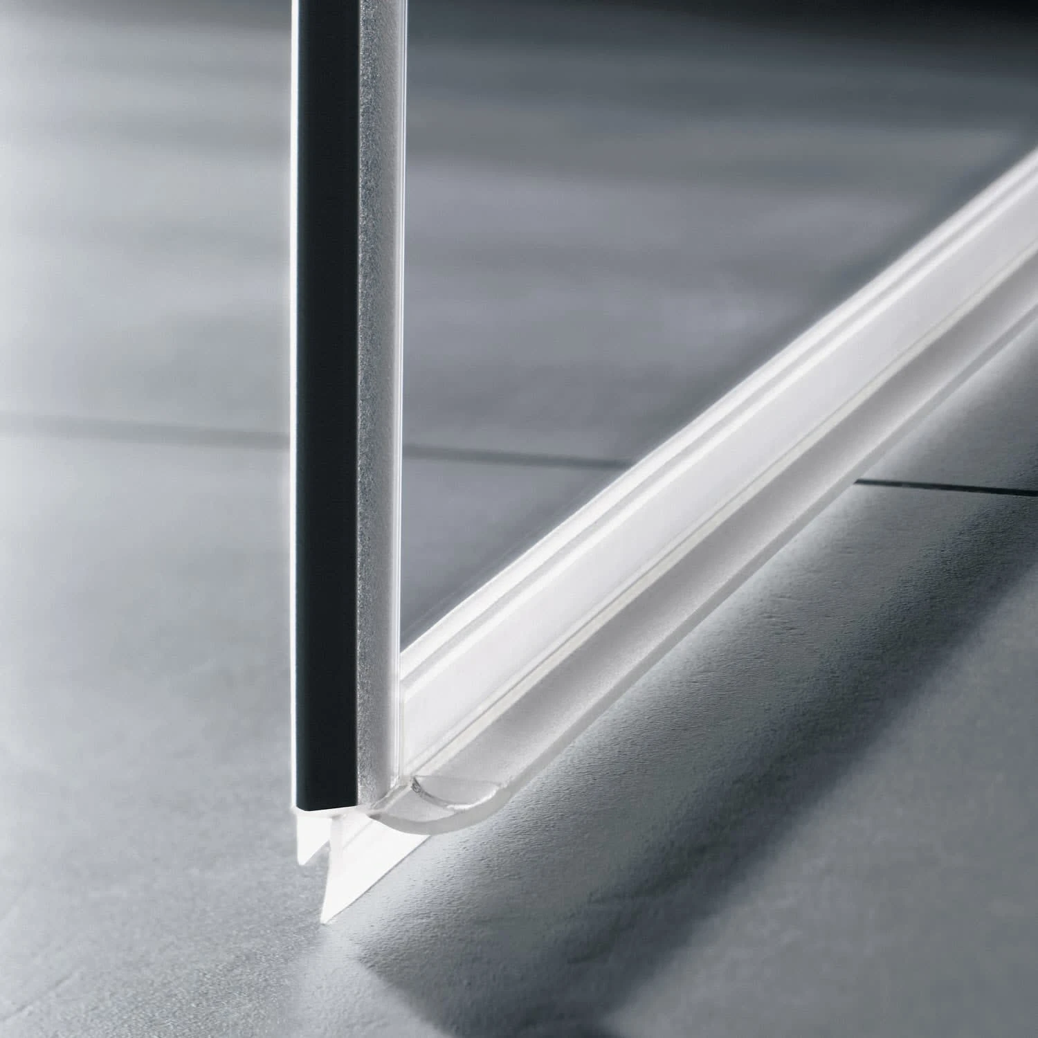 - Durchgehende Magnetleisten und Dichtprofile sowie waagerechte Dichtleiste mit Wasserabpralleffekt