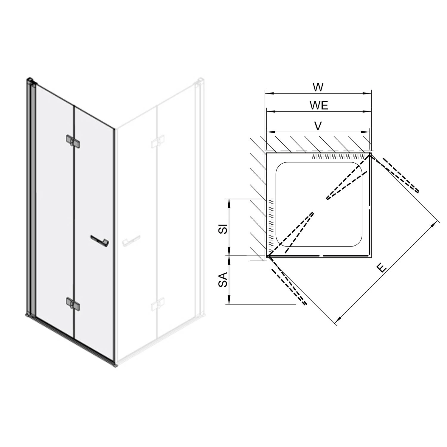 Koralle SL450 Eckdusche Falttür links, Typ EFTBOS L 120, 120 x 200 cm, bodengleich