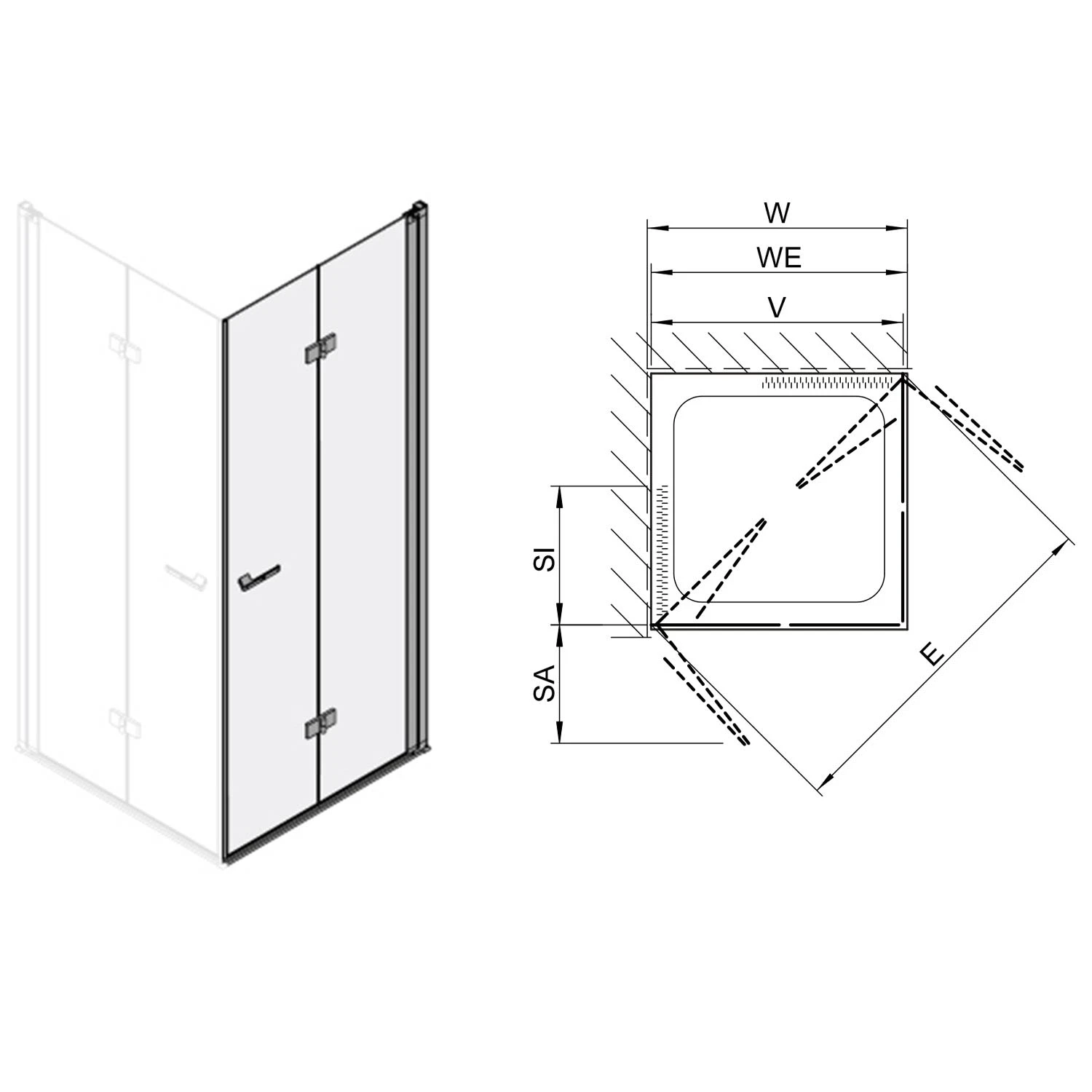 Koralle SL450 Eckdusche Falttür rechts, Typ EFTS R 80, 80 x 200 cm, für Duschwanne