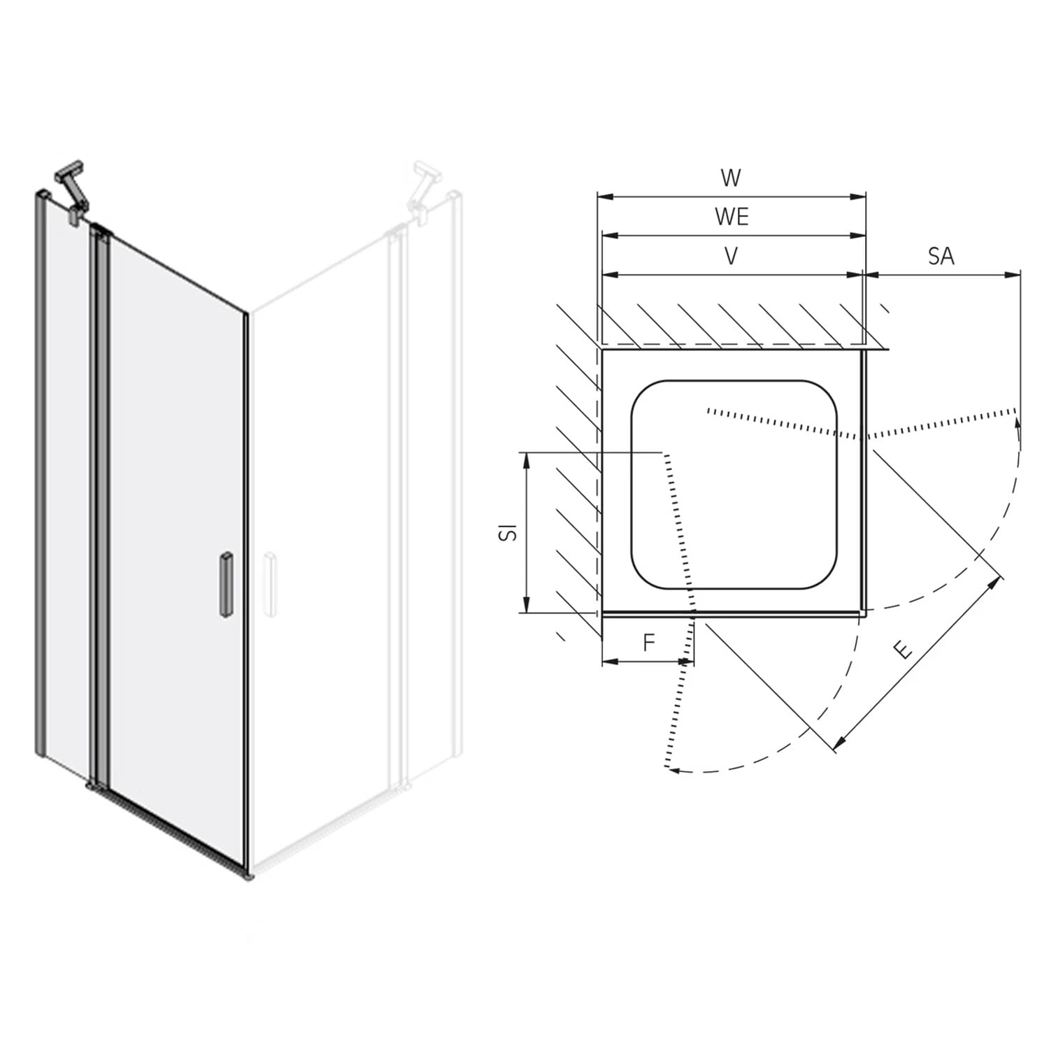 - linke Eckduschenhälfte für Eckeinstieg oder U-Kombination