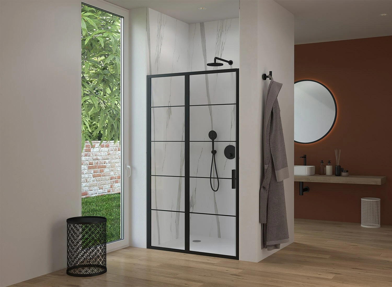 Sturotec 3060 Drehtür mit Festelement 140 x 200 cm für Nische mit Nano-Beschichtung