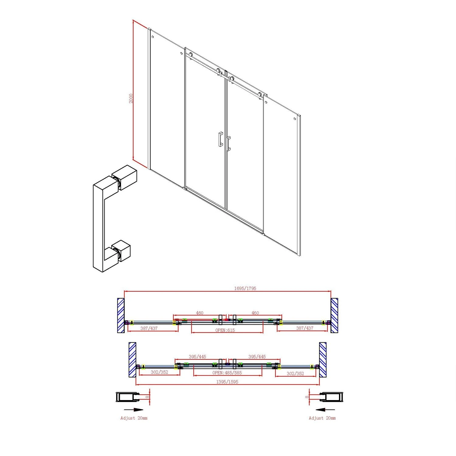 Sturotec 5060 2 Schiebetüren mit 2 Festelementen für Nische 180 x 200 cm mit Nano-Beschichtung