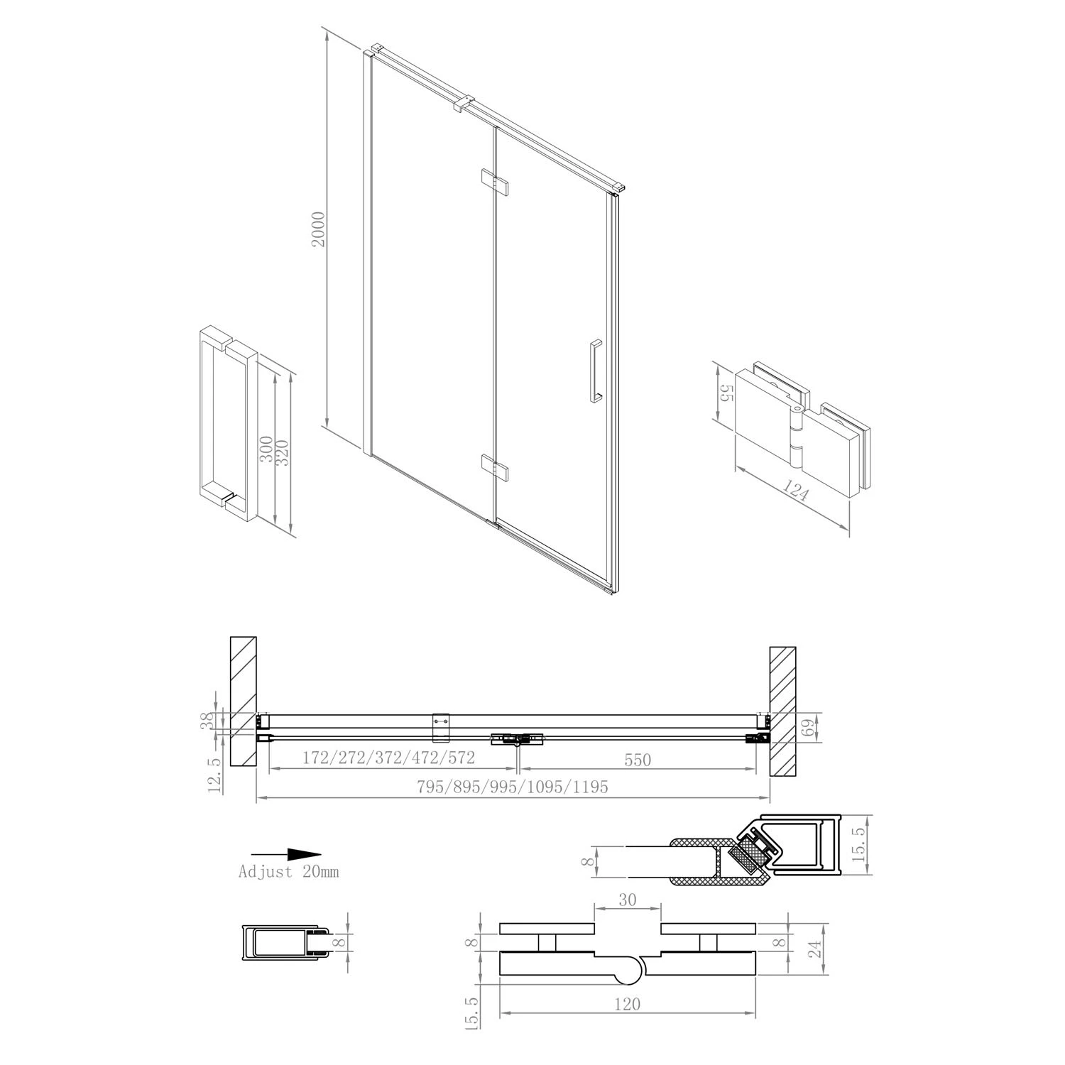 Sturotec 6070 Drehtür mit Festelement 120 x 200 cm für Nische, mit Nano-Beschichtung