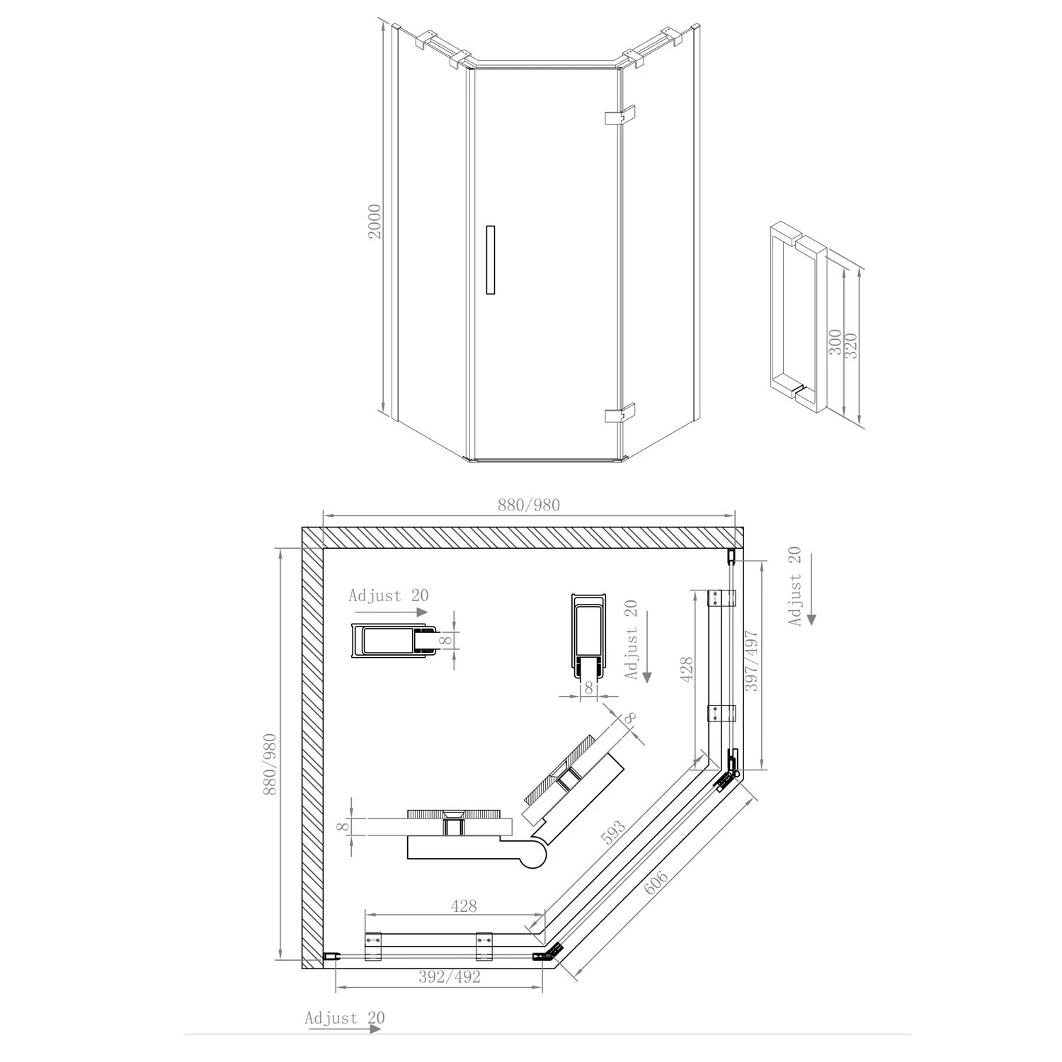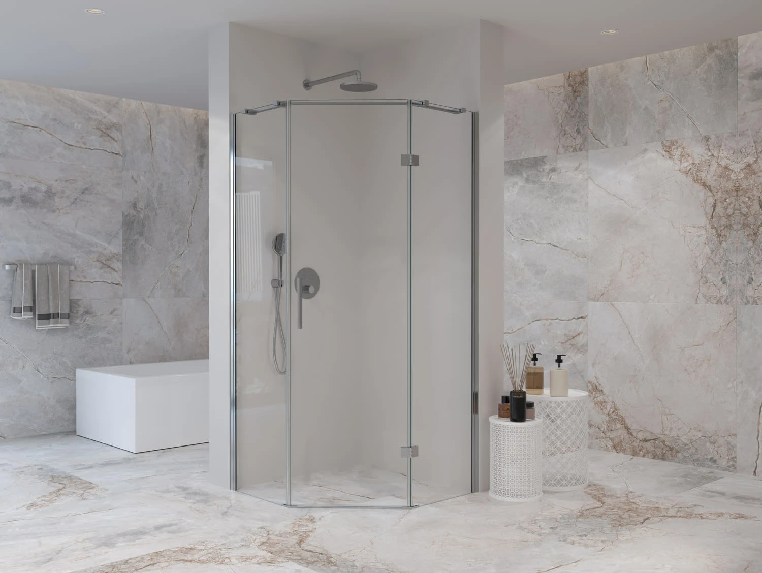 Sturotec 6080 Fünfeckdusche Drehtür mit 2 Fixelementen 100 x 100 x 200 cm mit Nano-Beschichtung