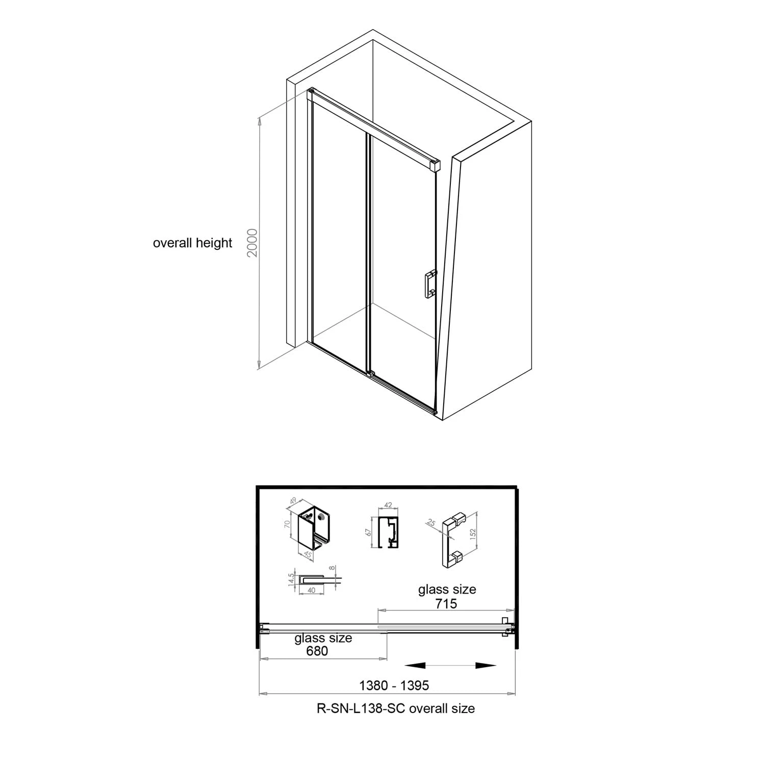 Sturotec 7060 Schiebetür mit Softclose 138 x 200 cm für Nische, mit Nano-Beschichtung