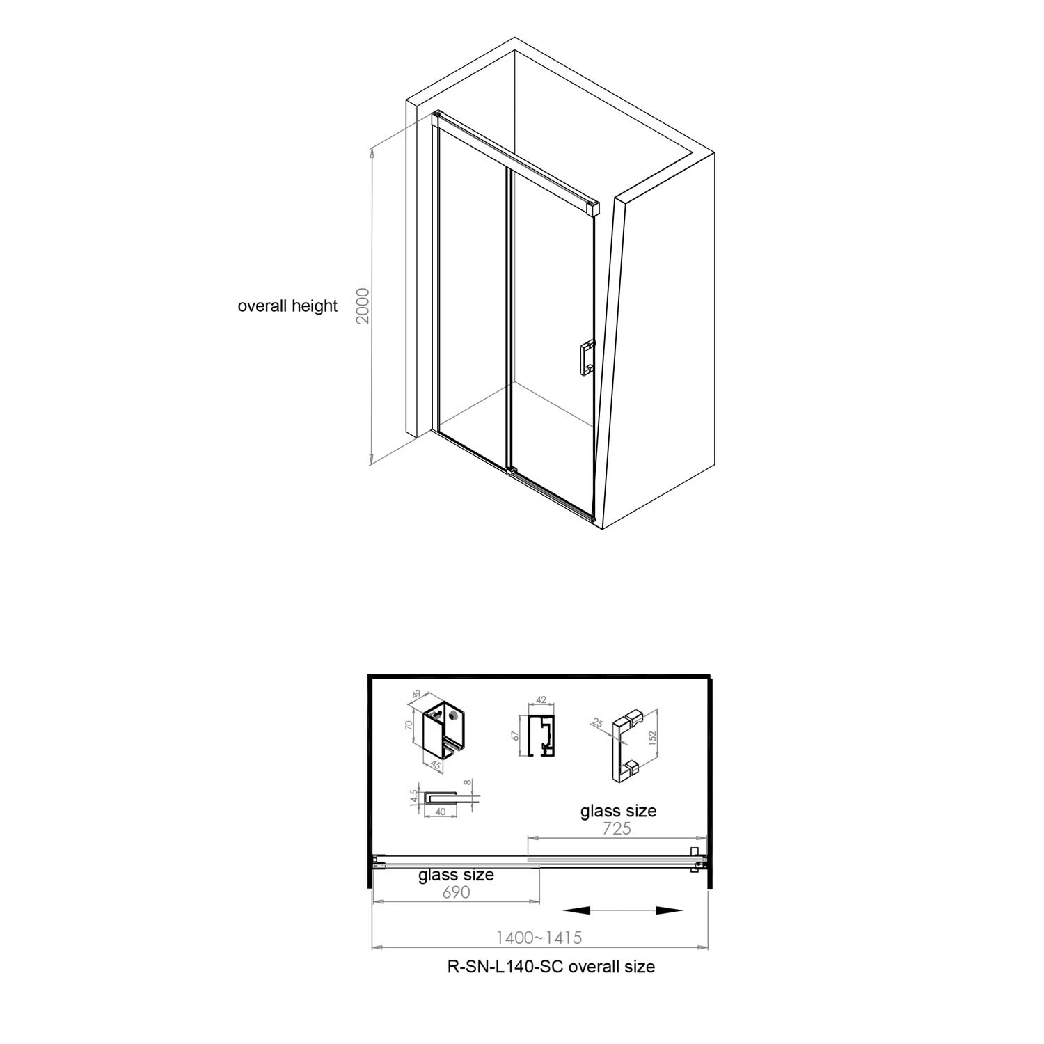 Sturotec 7060 Schiebetür mit Softclose 140 x 200 cm für Nische, mit Nano-Beschichtung