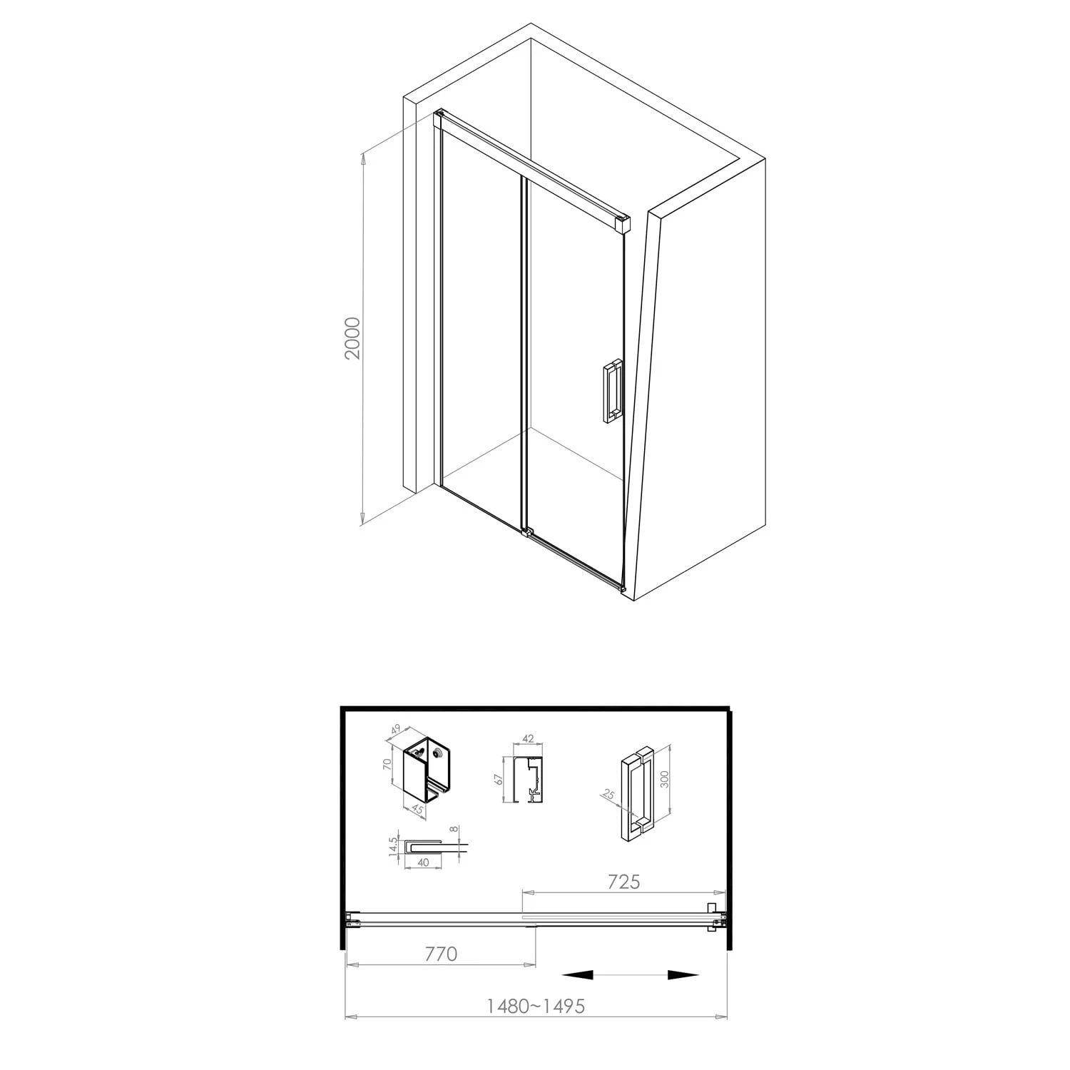 Sturotec 7060 Schiebetür mit Softclose 148 x 200 cm für Nische, mit Nano-Beschichtung
